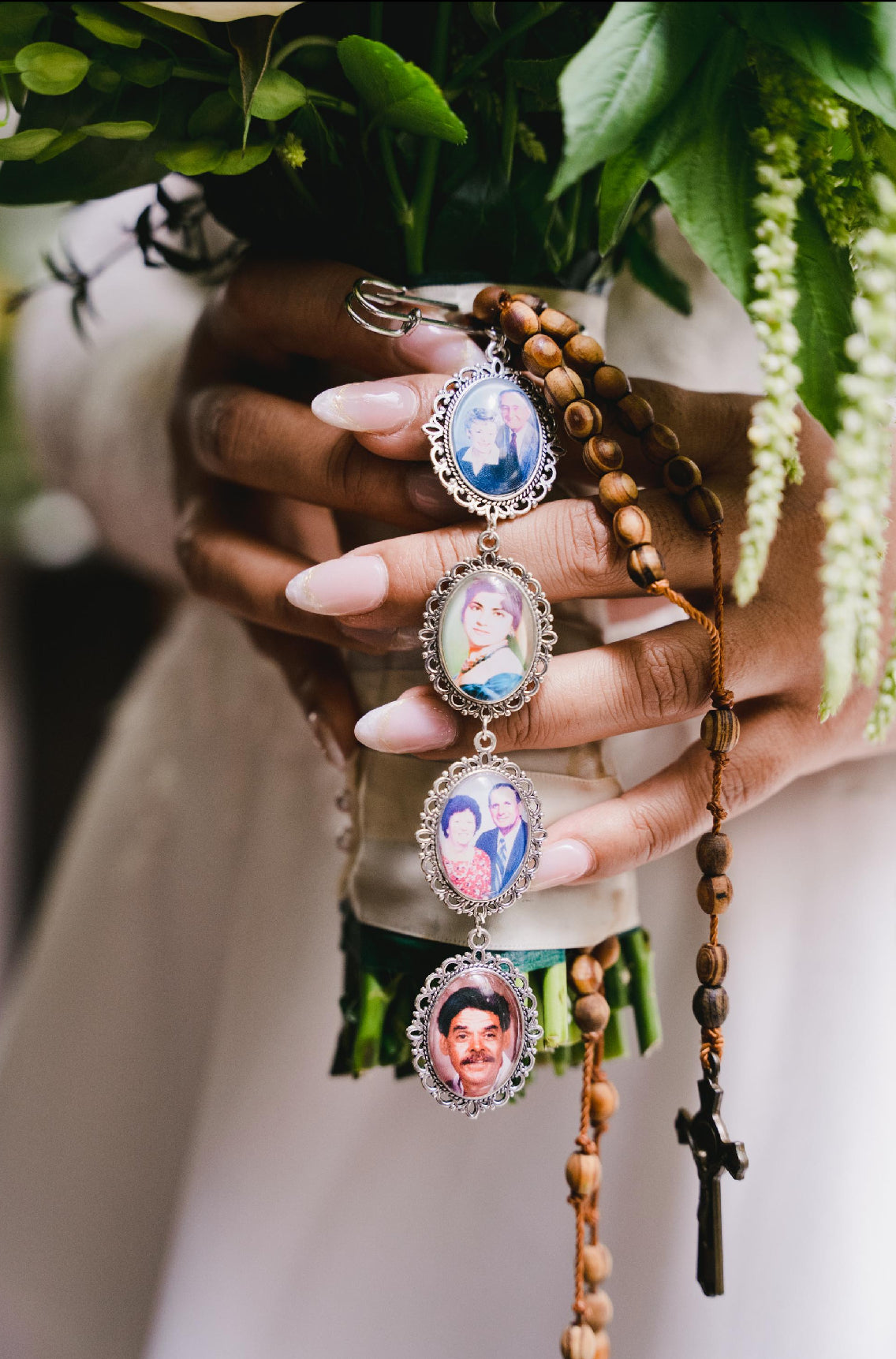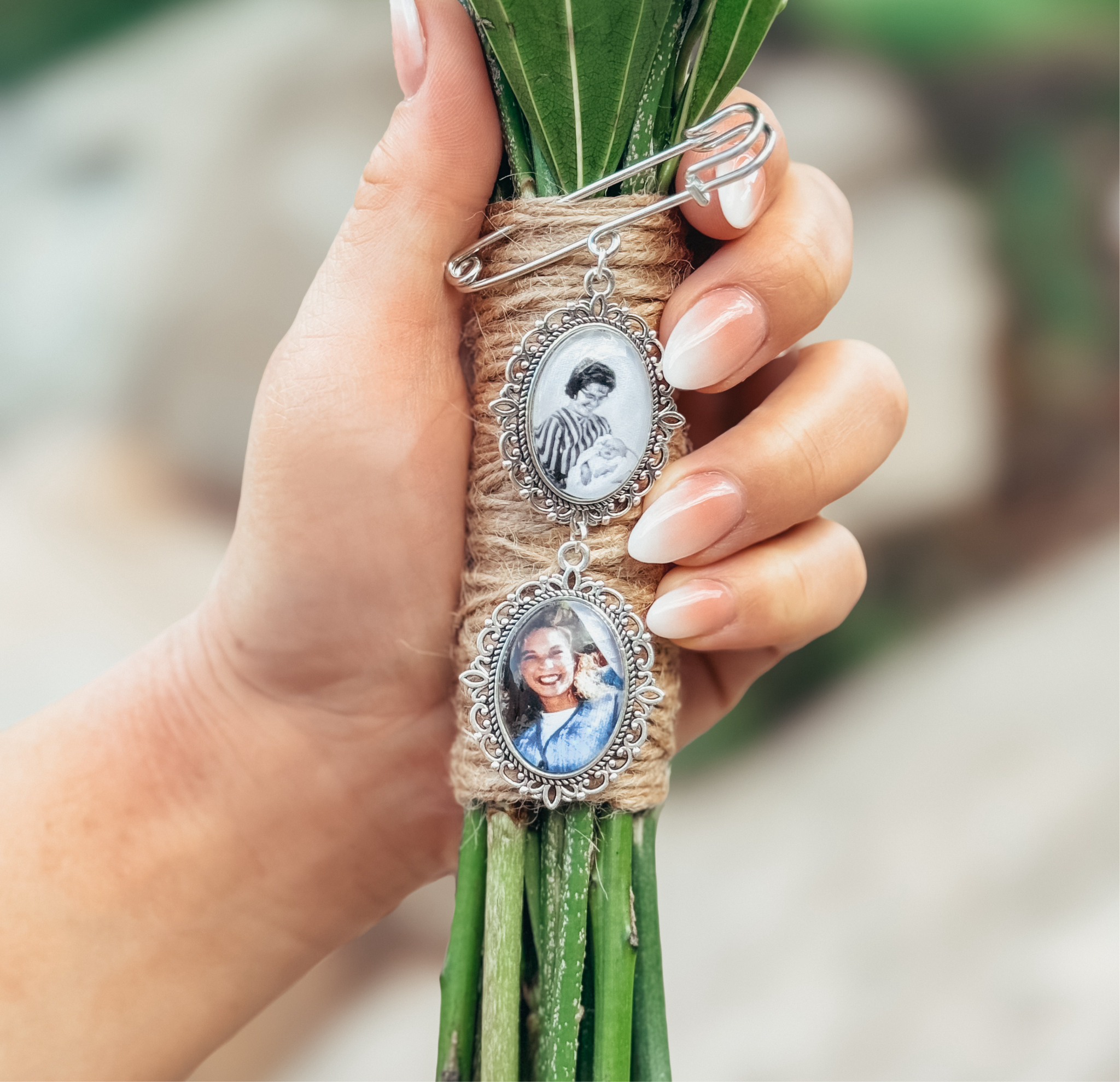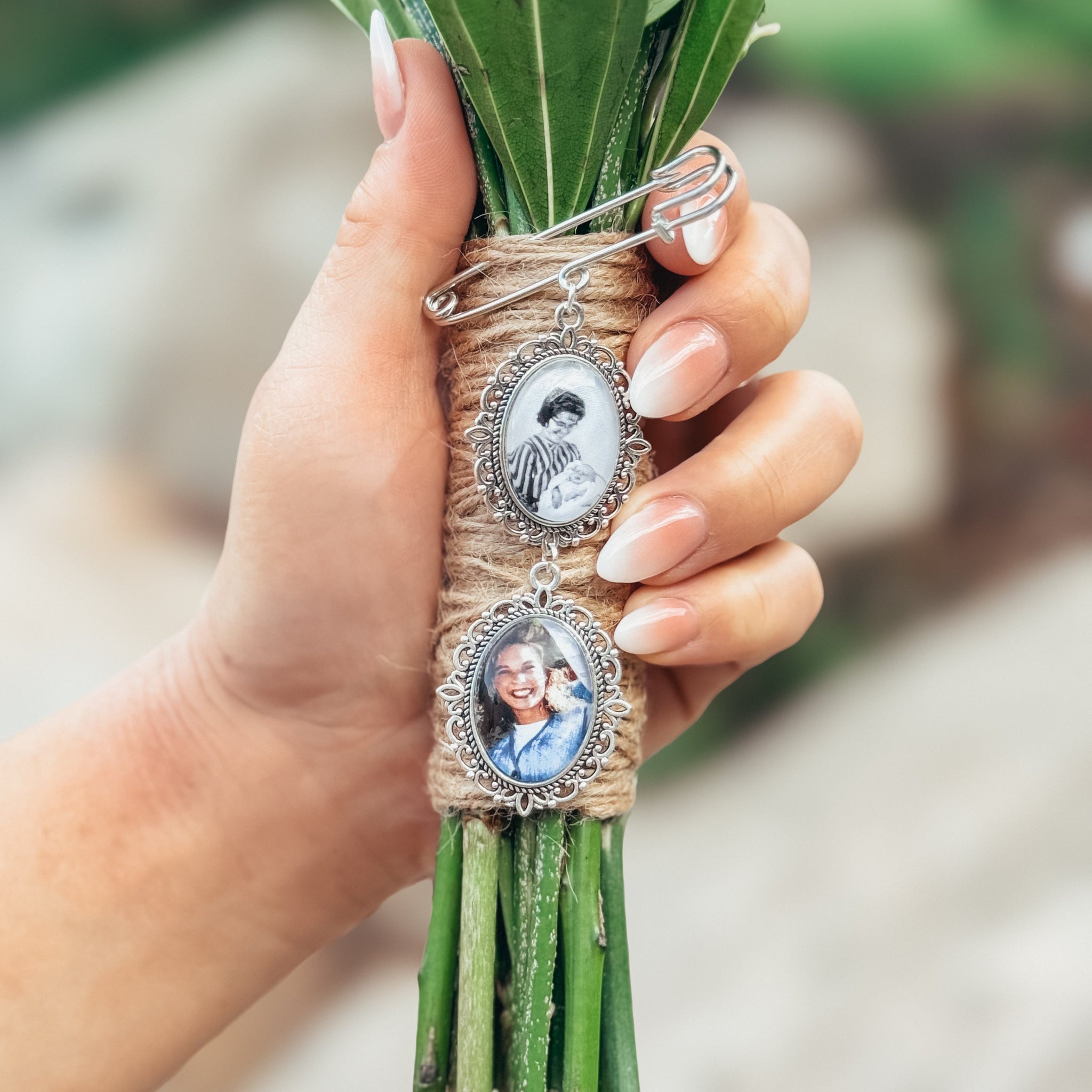 Imagine walking down the aisle or standing by your loved one's side, holding onto more than just a bouquet or wearing more than just a suit. Nestled within the delicate flowers or neatly pinned to your lapel is a charm that carries with it the face, the memory, the heart of someone dear. It's more than an accessory—it’s a touchstone, a whisper of love that joins you in this moment.